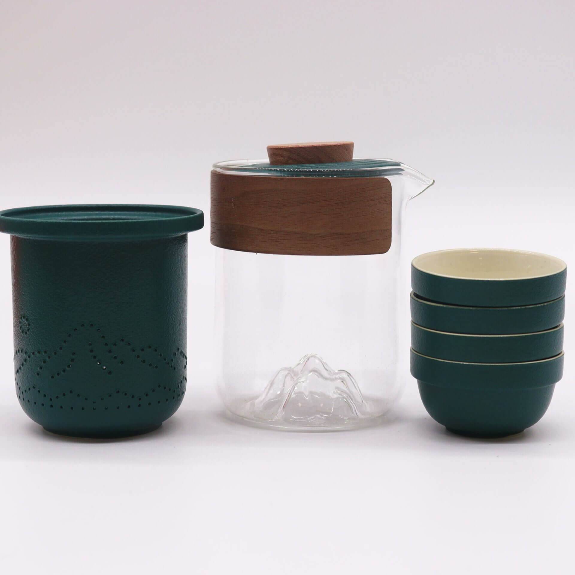 Travel Mountain Glass Tea Set with Ceramic Accessories